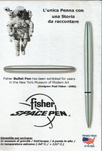 Paul G. Fisher, giovane americano che, all'epoca della II ^ guerra mondiale, era specializzato a produrre cuscinetti a sfera impiegati nei motori dei bombardieri militari, migliorò l'inchiostro delle penne a sfera e inventò la penna FISHER SPACE PEN, non poteva immaginare che un giorno una sua penna avrebbe soccorso gli astronauti della prima missione umana sulla luna.
